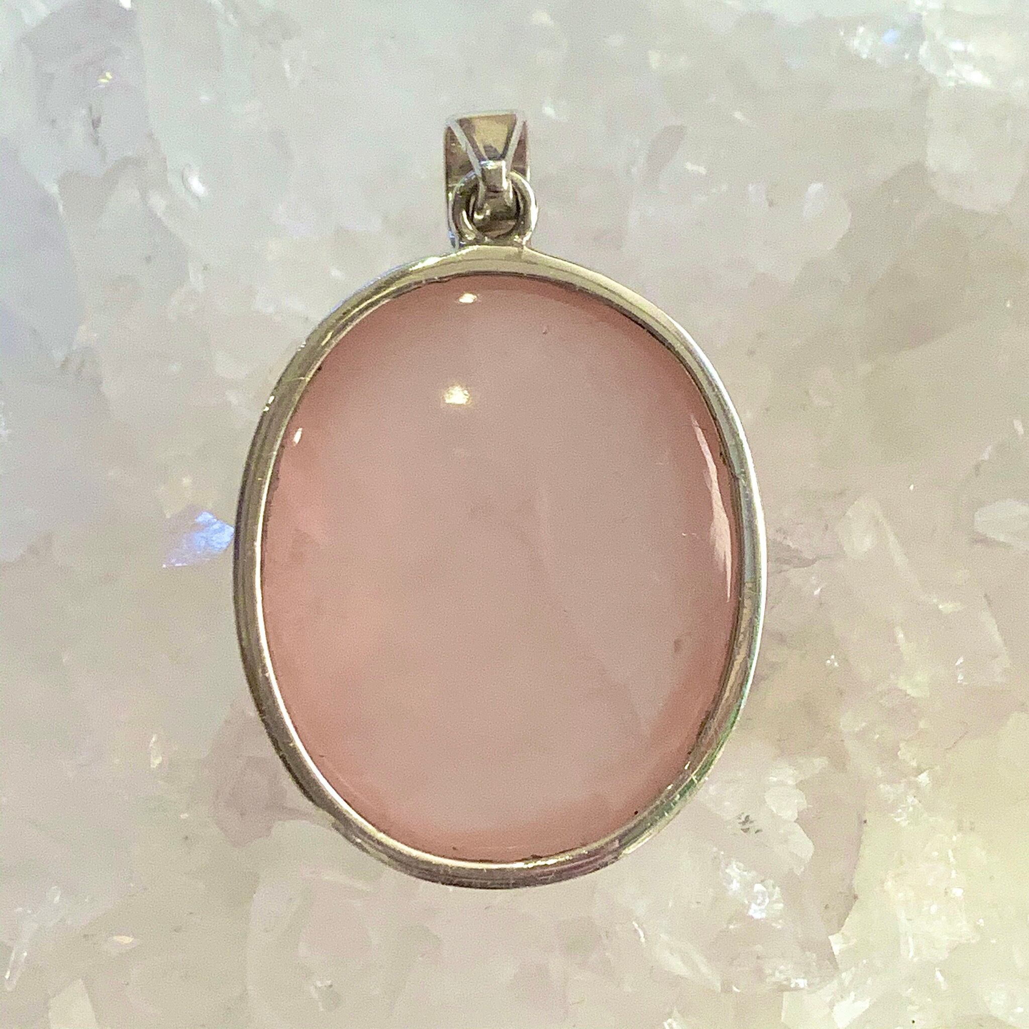 特大オーバル型のローズクォーツの silver925加工のペンダントトップです。