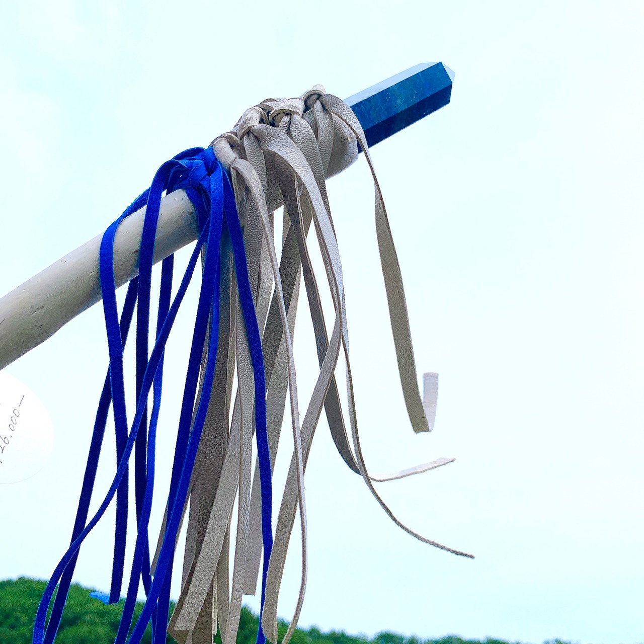 力強い美しいラピスラズリと白肌の流木のワンド、