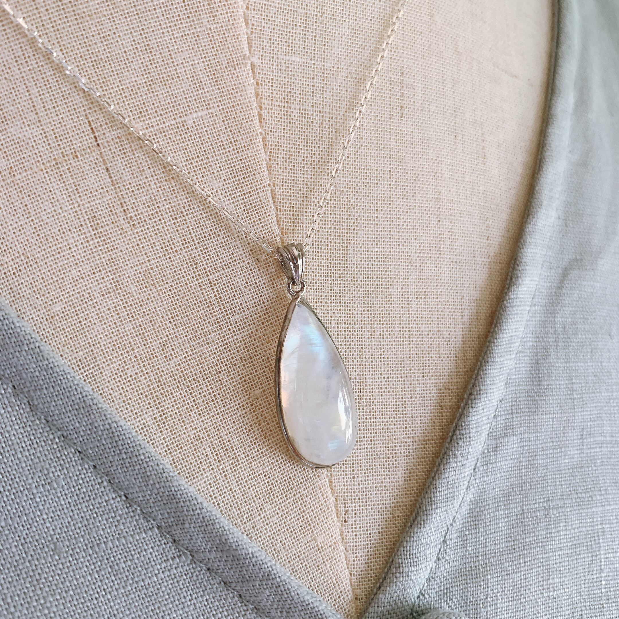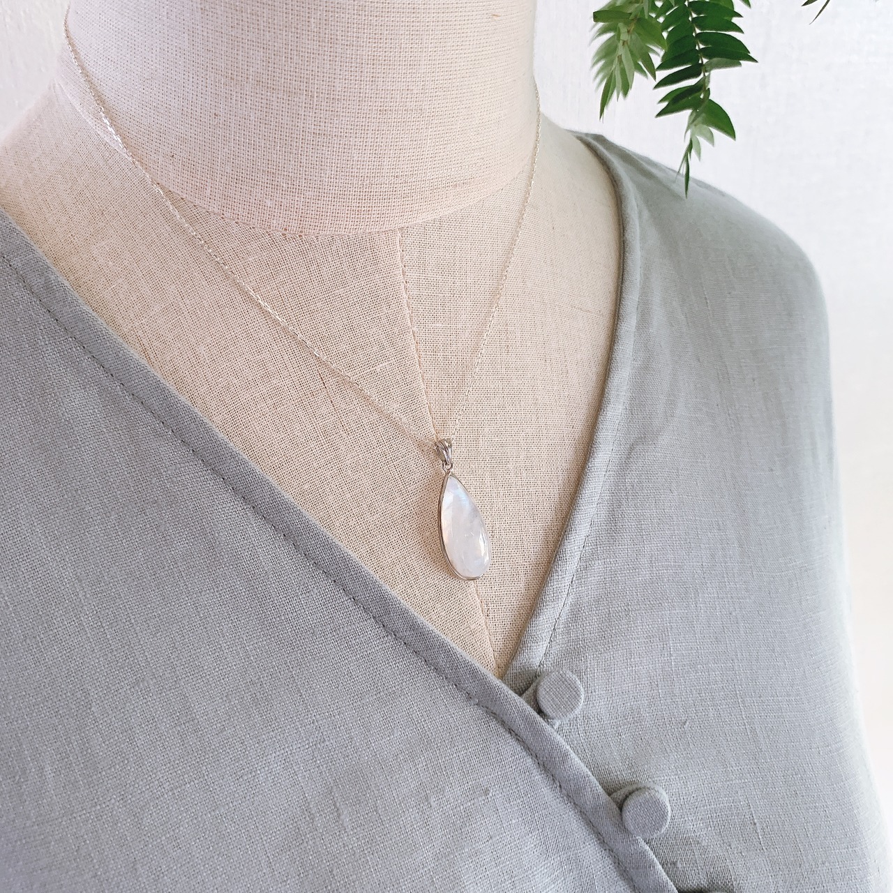 レインボームーンストーン・細長しずく型・ペンダントトップ ✴︎石からのメッセージ付き