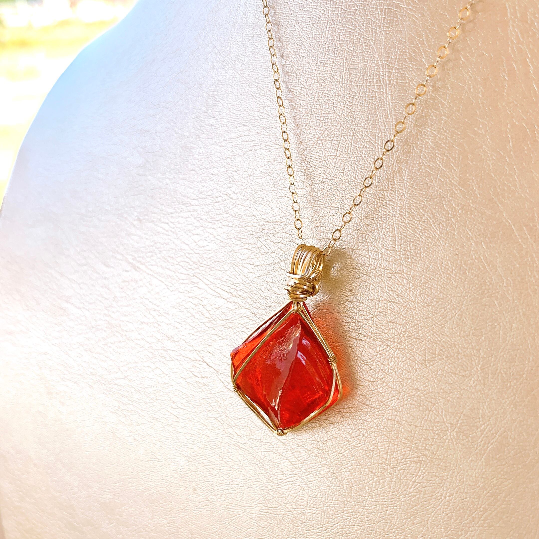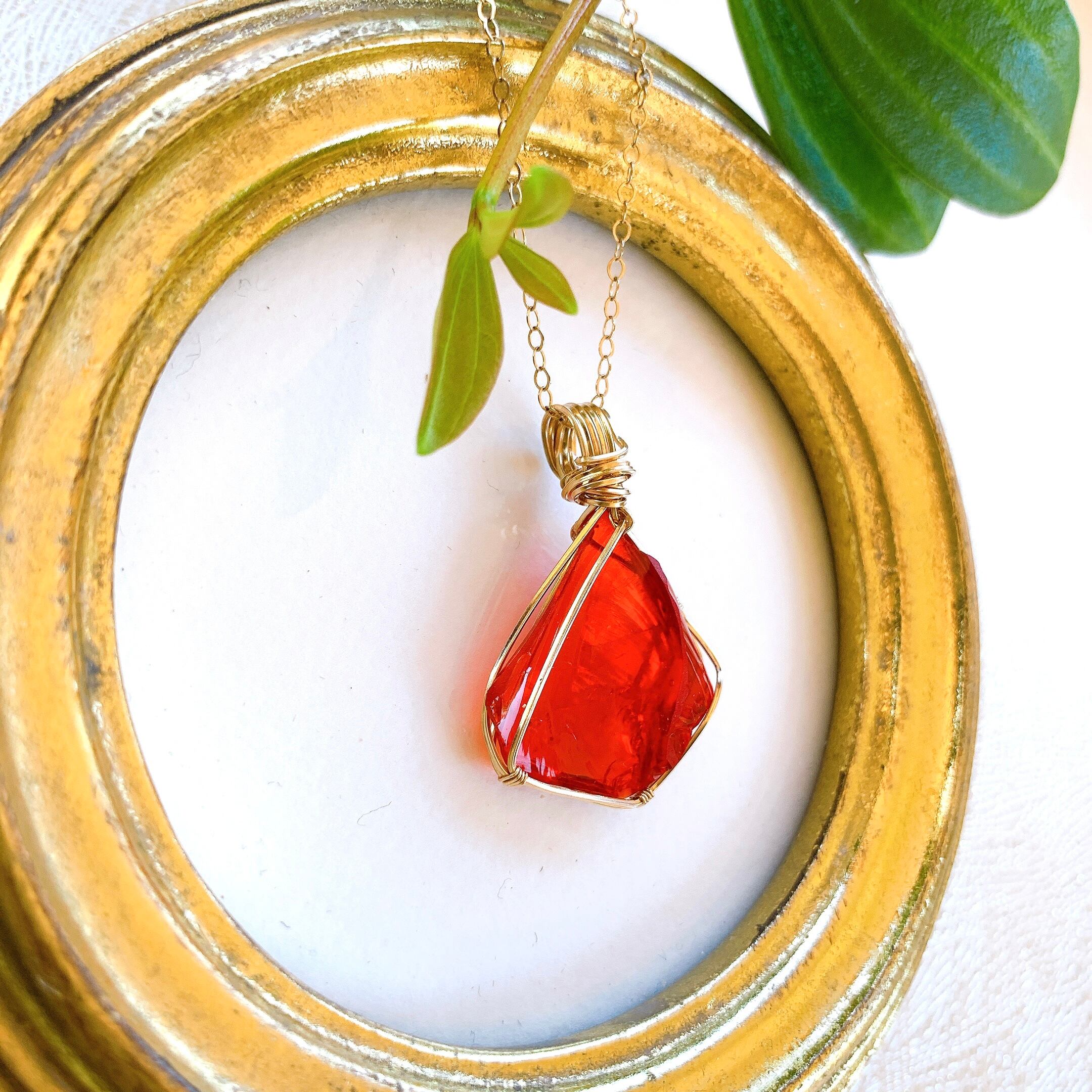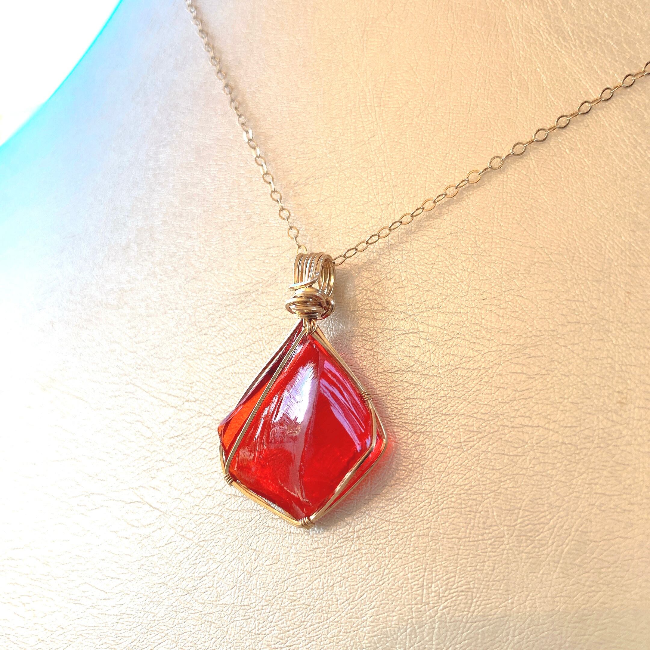 素晴らしい赤色、透明感も形も大変美しいアンダラクリスタルです✨濁りの全くない深紅、濃い色ですが光を取り込み明るく光輝きます。向かって左から右へ厚みが増します。(約3〜8mm)その形が大変魅力的です。存在感があり、石からのメッセージもそうですが上品で気高い気品溢れる素晴らしいジュエリーです✨